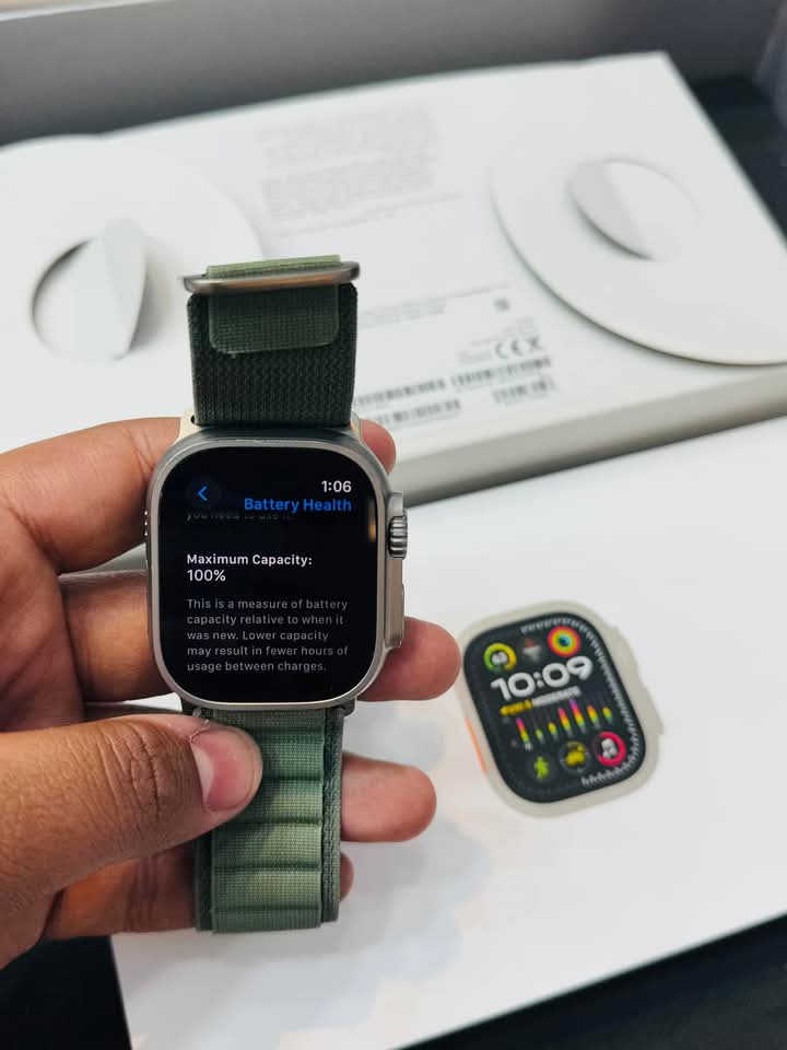 Apple Watch Ultra 2 49mm Titanium Green begie M/L Battery 100% with box & cable Dm me price WhatsApp 60393351